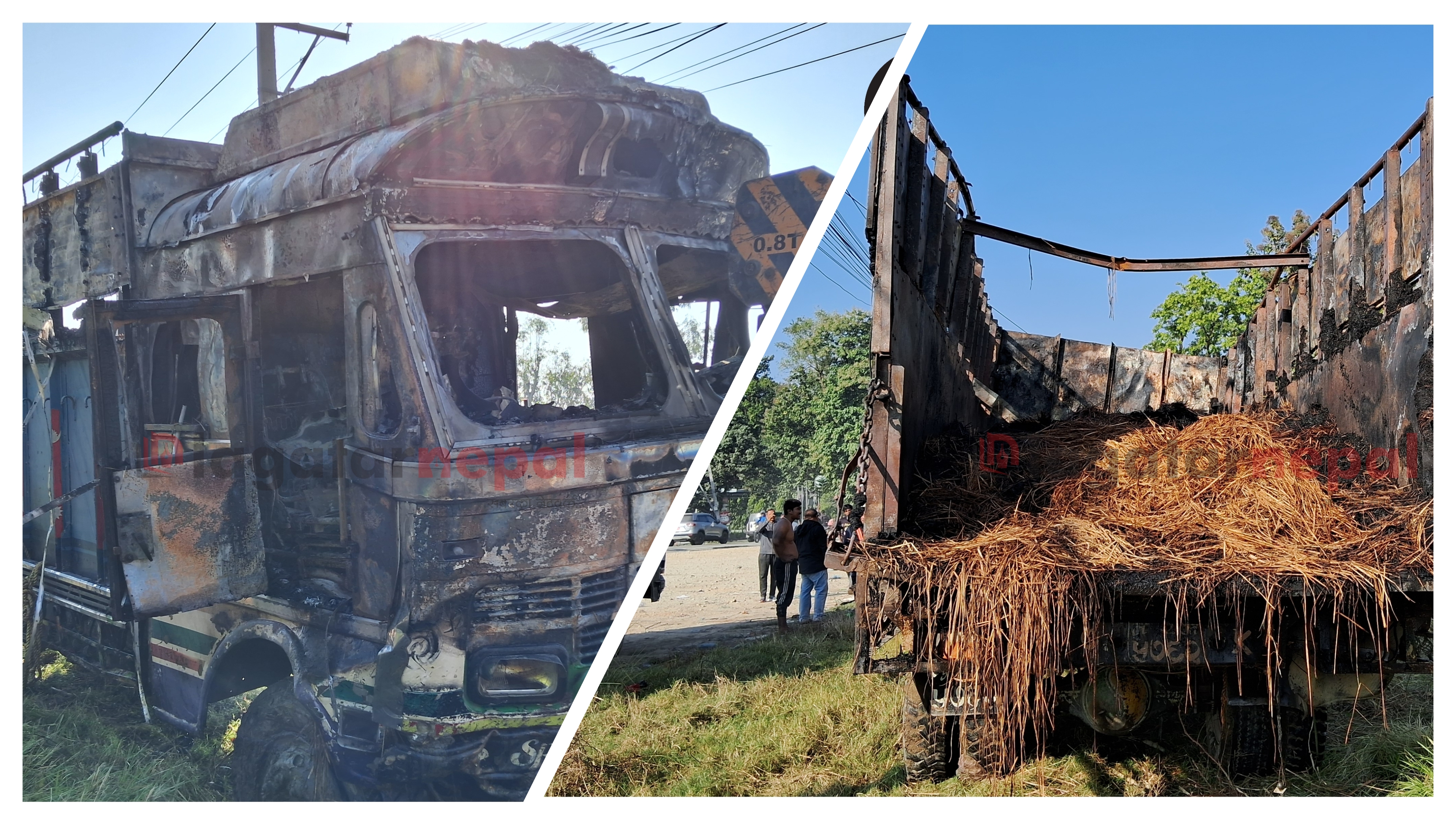 बुधवार बिहान करिब २: ४५ बजे पूर्व–पश्चिम राजमार्गमा पश्चिमबाट आएको पराल लोड गरिएको लु२ख ५७६२ नम्बरको रोकी राखिएको ट्रकमा एक्कासि आगलागी भएको हो ।